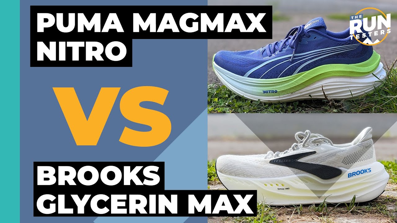 Brooks Glycerin MaxとPuma MagMax Nitroは、最大クッションシューズとして快適さを共有しつつ、Brooksが安定重視、Pumaが汎用性で差別化。イージーラン中心ならBrooks、軽いテンポを求めるならPumaをおすすめします。どちらも高品質で、長距離ランナーのパートナーに。実際に試着してフィットを確認しましょう。