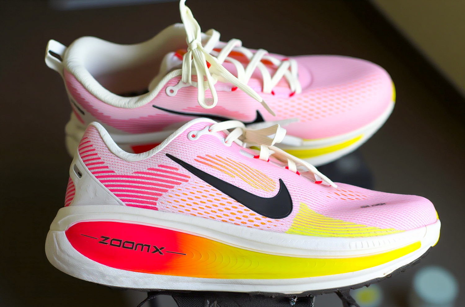 1. ZoomXの柔らかさ:低速でもZoomX層が輝き、足裏にふわっとした感触をもたらします。フルZoomXミッドソール(例:ヴェイパーフライ)では弾むが不安定になりがちなところを、ReactXベースが安定させ、揺れを排除しています。