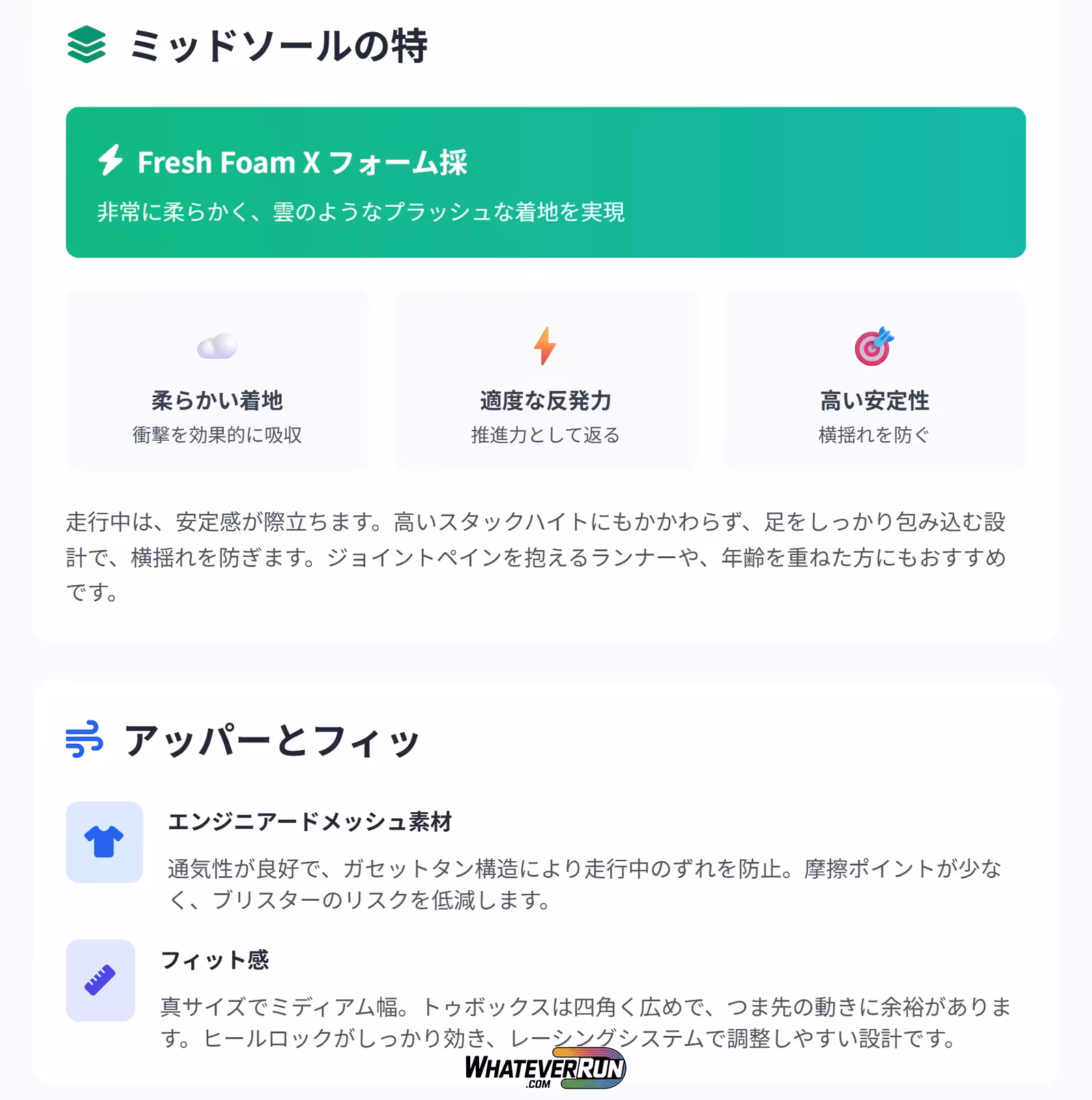 | 880 v15 | 高 | 安定性が高く、汎用性抜群。軽量で日常使いやすい。 | 露出フォームが多く、耐久性が中程度。ウェット時のトラクションが弱い。 |