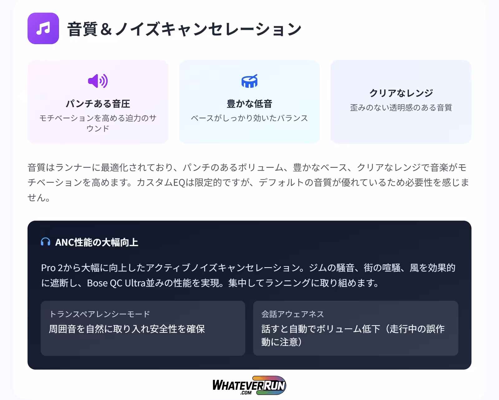 - ランニング向け新機能: 心拍センサー、強化ANC、改善されたフィット。