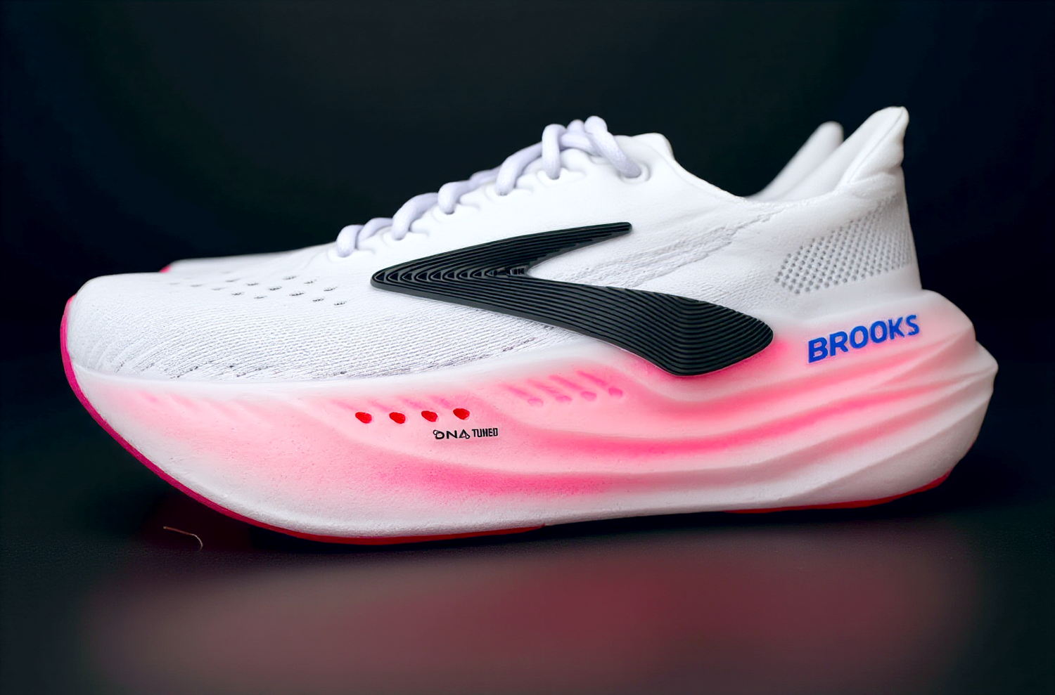 このシューズの魅力は、新しい「DNAチューンドフォーム」と呼ばれる窒素注入フォームにあります。ヒール部分には大きなセル構造で柔らかい着地を、フォアフットには小さなセル構造で反発力を提供し、スムーズなトランジションを実現。さらに、「グライドロールロッカー」と呼ばれるロッカー形状が、かかとからつま先への自然な動きをサポートします。