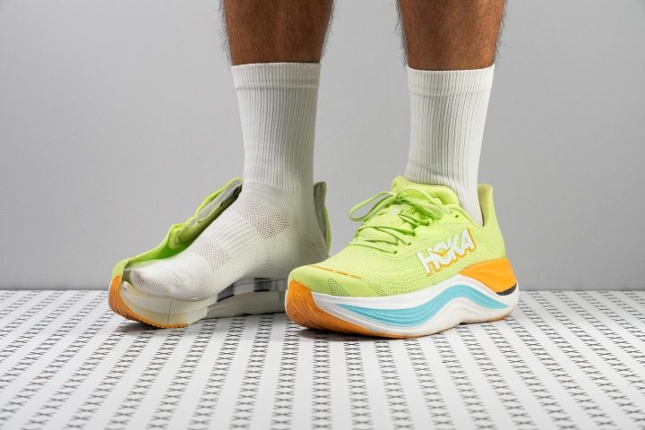 比較モデルでは、Cielo X1がフルPEBAで軽快なレスポンスを提供。一方、Skyward Xは耐久性を優先したEVAベースが特徴です。Transport Xは日常走行に近く、安定感で共通しますが、Skyward Xの極厚スタックが差別化されます。