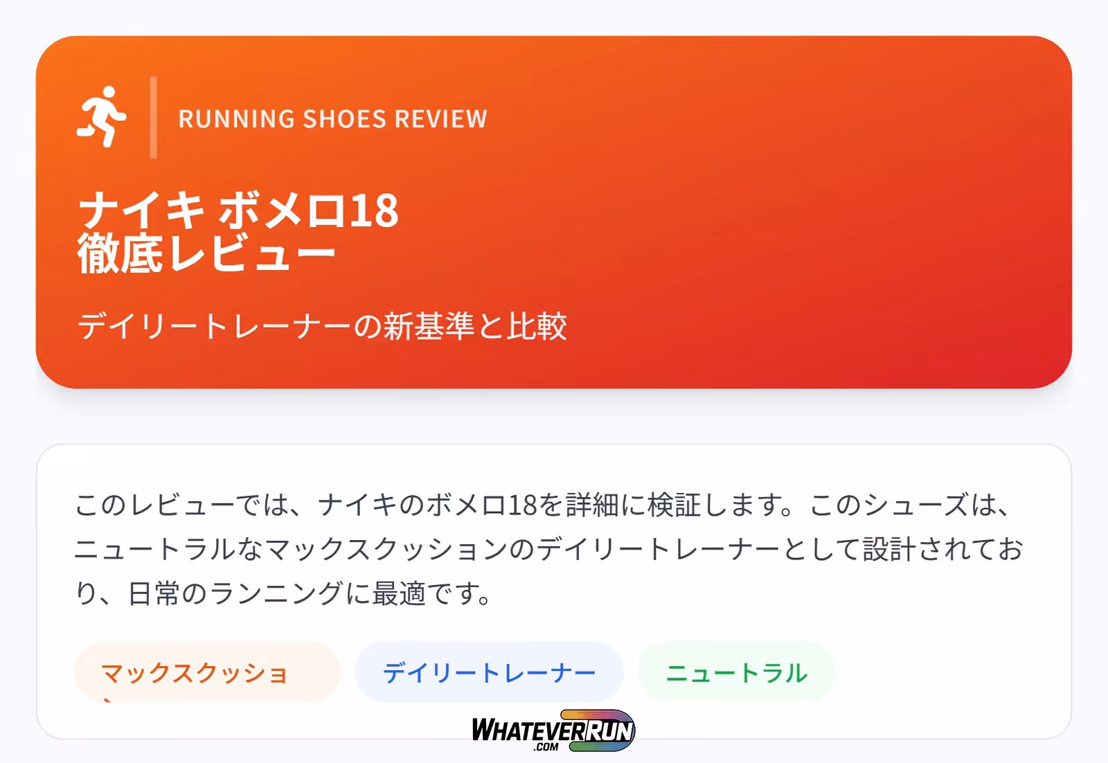 このレビューでは、ナイキのボメロ18を詳細に検証します。このシューズは、ニュートラルなマックスクッションのデイリートレーナーとして設計されており、日常のランニングに最適です。テスト結果に基づき、その特徴やパフォーマンスを解説し、他モデルとの比較も行います。ランナーの皆さんが最適なシューズを選ぶ参考になれば幸いです。