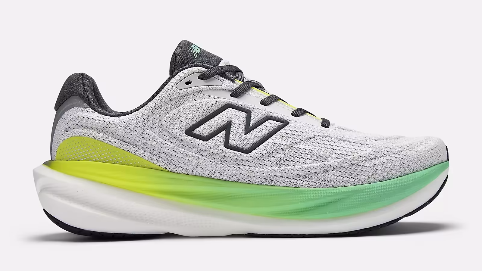 上部構造では、通気性を高めたオープンなメッシュデザインを採用し、表面に微妙な凹凸を加えることでフィット感を向上させた。ヒールカウンターは外部にプラスチックのリッジを配置し、内部サポートを強化している。これらの変更は、全体としてシューズを軽やかに仕上げつつ、安定性を損なわないバランスを取っている。視覚的には、v14の滑らかなシルエットから少し伝統的なフォルムに戻った印象で、ランニング中の自然な動きを促進する設計だ。