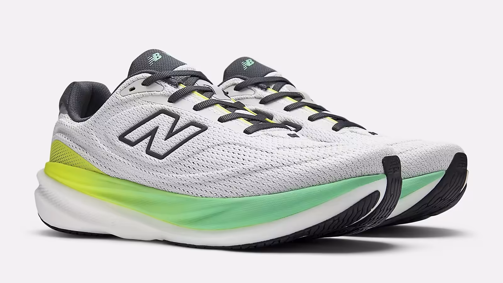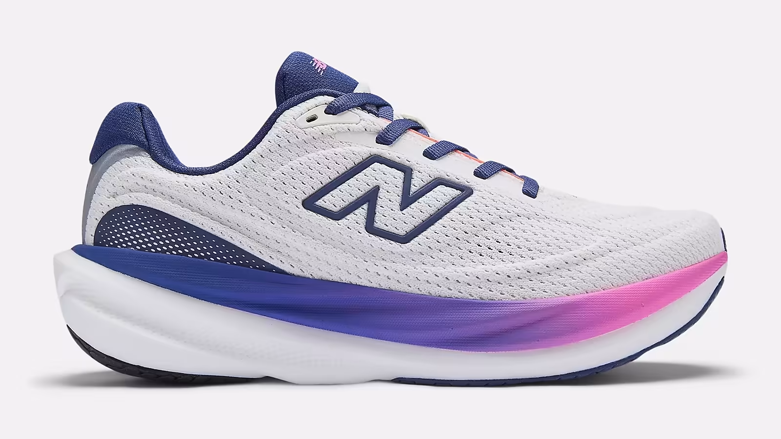 このフィットは、幅広い足型に対応し、ステップイン時の快適さが際立つ。硬めの前足部素材はラン中には気にならず、全体として足に溶け込むような感覚を提供する。ニューバランスの伝統的なサイジングを維持しつつ、v15では軽量化がフィット感の軽やかさを強調している。