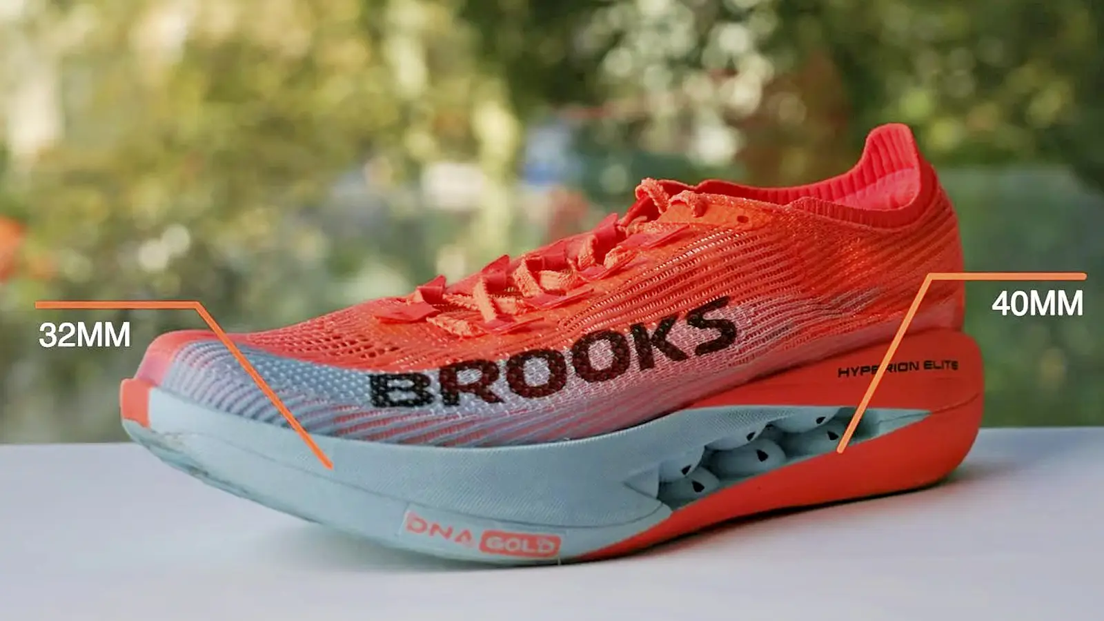 ミッドソールの革新が、Hyperion Elite 5の核心だ。DNA Goldと呼ばれるPEBAベースの素材は、Brooks史上最もエネルギー返還率の高いフォームで、柔らかさと反発力を両立。球状のカットアウトが特徴で、これにより足裏にソフトでバウンシーな感触を提供する。走行中、この技術はクッション性を高め、さまざまなペースで快適さを維持する。
