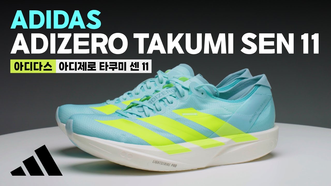 アディゼロ タクミセンシリーズの進化を振り返る。9、10、11の比較から、軽量化と剛性の強化が見て取れる。