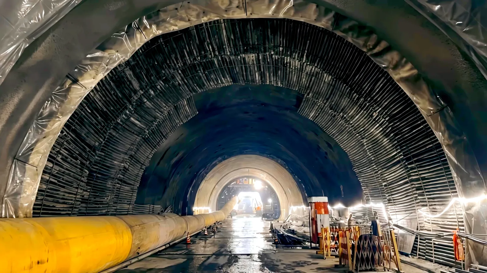 主トンネルでは、発泡コンクリートを4万本のPE管に充填し、70センチメートルの減震層を形成。さらに、鋼筋コンクリートに30メートルごとに1メートルの隙間を設け、「多節棍」のような柔軟構造を実現した。これにより、断層のずれに対する耐性を高め、TBMの卡まり時にも主トンネル経由で救援可能とした。こうした柔軟な対応は、地質変動の多い地域でのトンネル建設に新たな指針を提供する。