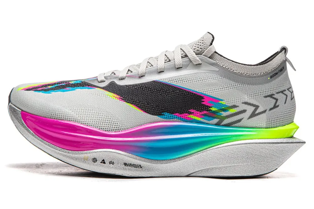 リーニン飛電6エリートは、エリートランナー向けのマラソンレーシングシューズとして開発されたモデルだ。ミッドソールに採用されたスーパーブームカプセル技術は、空気を封入した特殊な構造で、従来のフォームを上回る反発性を提供する。カーボンプレートを挟み込んだデュアルレイヤー構造が、遅いロッカーで推進力を生み出し、長距離での持続的なパフォーマンスを支える。アウトソールはグリップ力が高く、ウェットコンディションでも信頼性が高い。一方で、ソフトなミッドソールゆえの安定性の不足が、タイトなターンで課題となる。全体として、平坦で直線的なコースに最適化されたシューズであり、2026年のマラソンシーンで注目を集めそうだ。