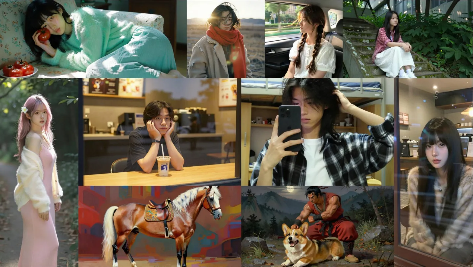 Sample images show everything from realistic portraits and animals to anime-style art, Japanese New Year themes, and detailed landscapes—all with excellent prompt following.